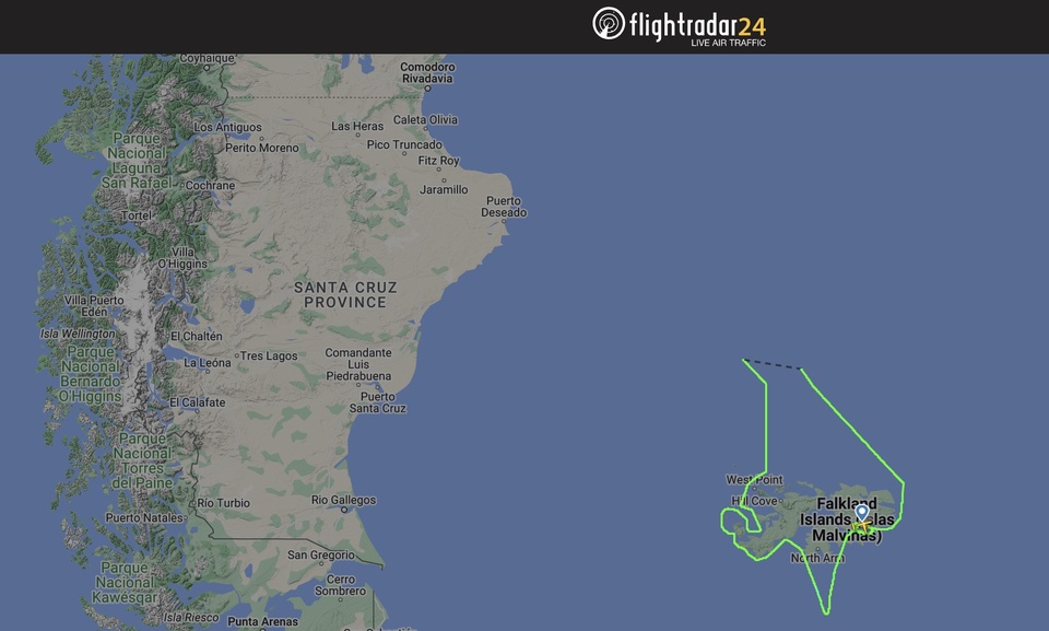 La aeronave fue observada a través de la plataforma de monitoreo satelital “Flightradar24”, que alertó de que el avión militar, con matrícula ZM421, despegó desde la base de la OTAN en las Islas y se acercó a poco más de 60 kilómetros de la ruta operada por Aerolíneas Argentinas y Flybondi