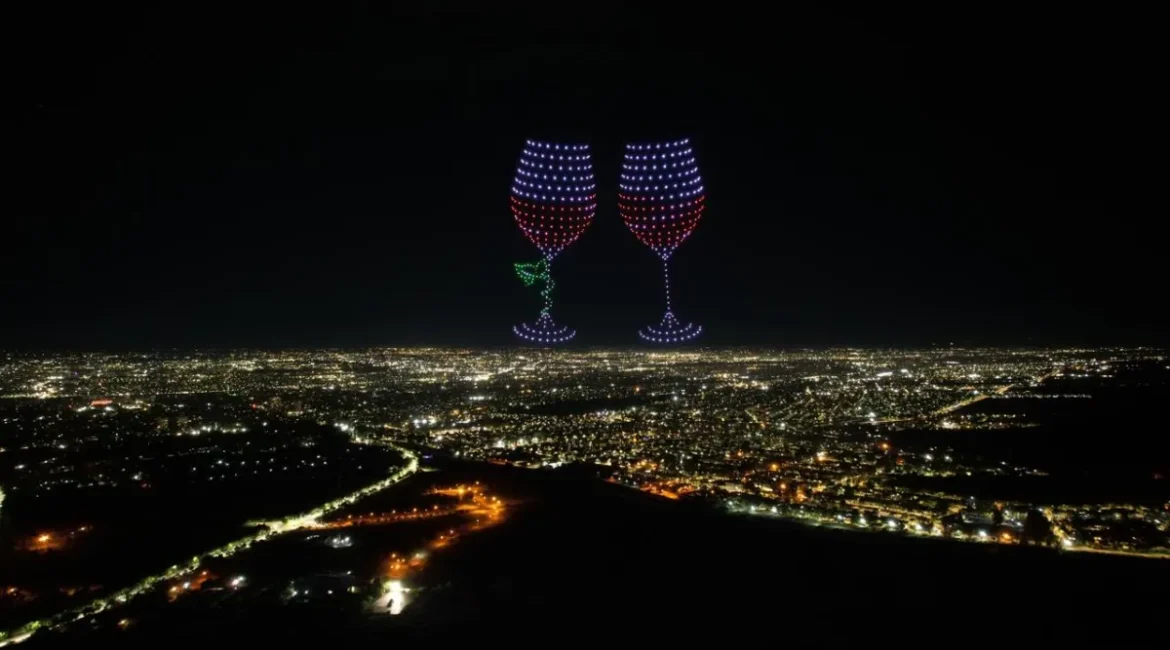 El espectáculo contó con 500 drones lumínicos que recrearon figuras que evocaron íconos de la historia mendocina y del mundo del vino.