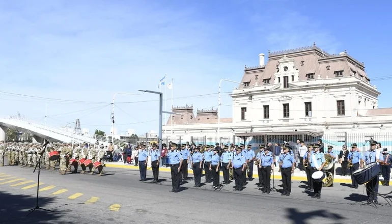 A las 11.38 inicio el tradicional desfile cívico militar con la participación de las escuelas, instituciones de la sociedad civil y también la Policía de la provincia, de la Federal, Bomberos y el Ejército Argentino.