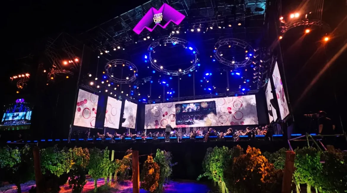 La Fiesta de la Cosecha celebró su edición número 25 con una propuesta que quedó marcada como una de las más especiales de los últimos años: Las Pelotas se presentó en formato sinfónico junto a la Orquesta Filarmónica de Mendoza, bajo la dirección y arreglos de Popi Spatocco. Todo tuvo lugar en el tradicional escenario montado sobre los viñedos del Aeropuerto Internacional de Mendoza, en El Plumerillo.
