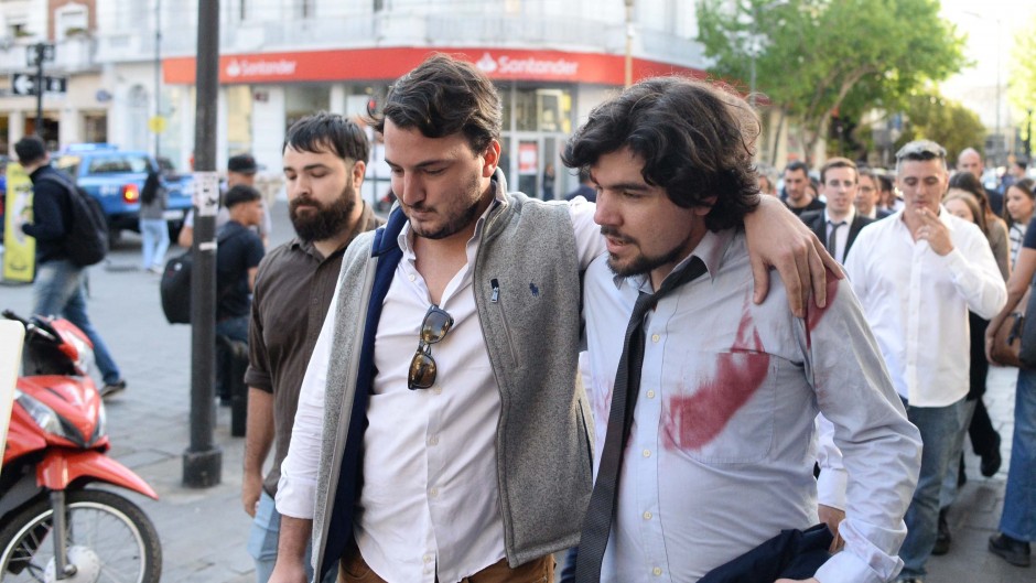 “Hijos de puta, hijos de puta” coreaban los estudiantes que los esperaban en la puerta de la sede con pancartas y redoblantes, apenas vieron llegar a los libertarios.