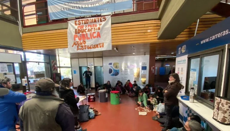 Docentes y estudiantes de la Universidad Nacional de San Luis (UNSL) tomaron este lunes el Rectorado en el contexto del paro nacional de las casas de altos estudios.