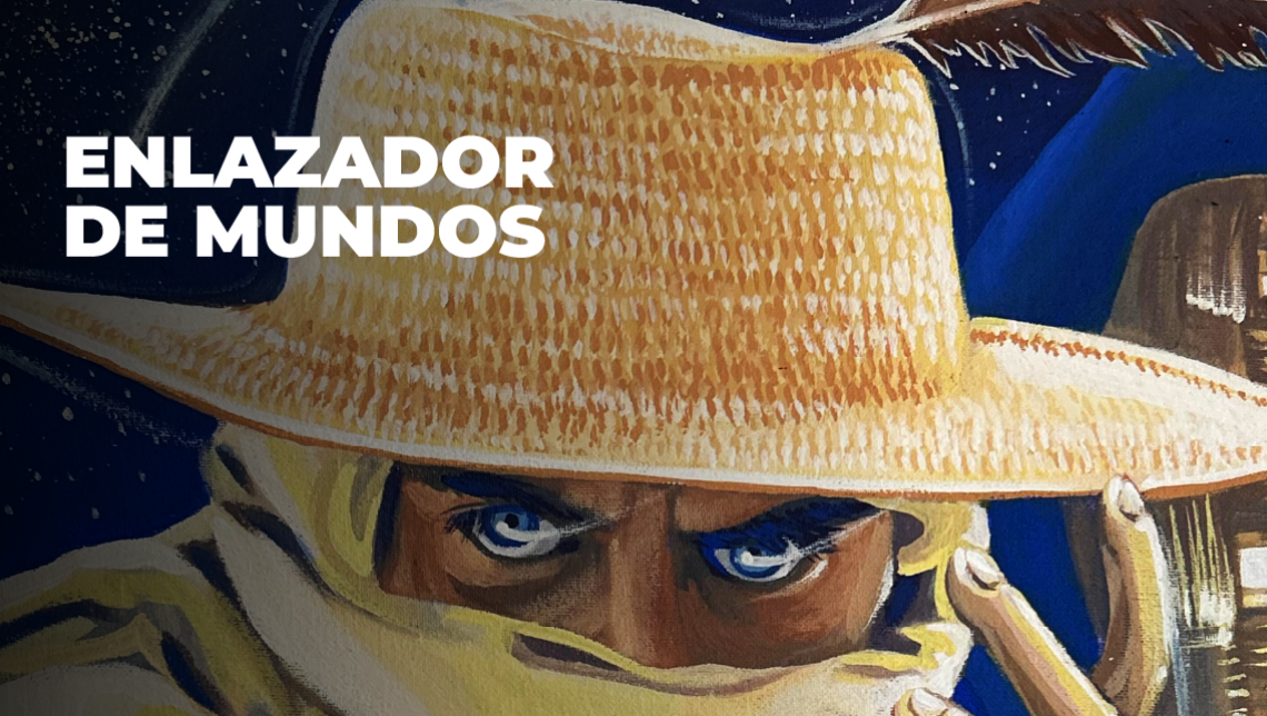 El Enlazador de Mundos surge de la cotidianidad del trabajo rural, con su chupalla, sombrero regional que lo caracteriza. Este personaje picaresco, sabio mensajero interdimensional que desciende de otros planos para recordarnos el propósito de nuestra existencia.