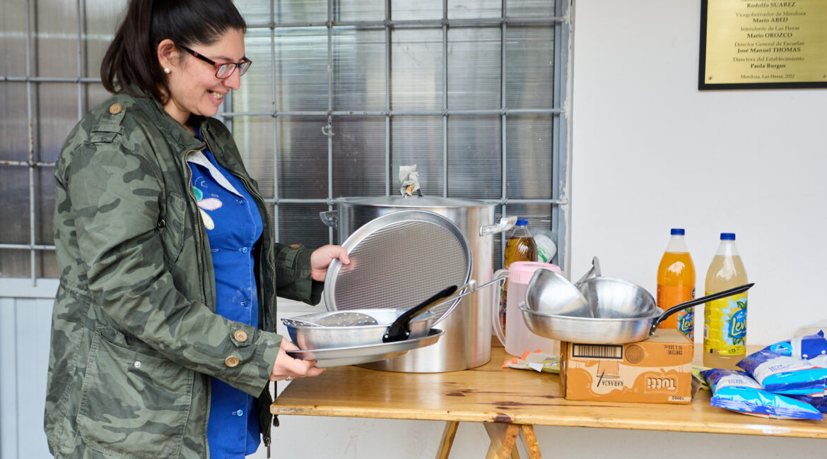 Además el Municipio de Las Heras, a través de la subdirección de Asistencia Comercial e Institucional de la secretaría de Hacienda, aportó insumos y herramientas de cocina para mejorar el espacio de formación laboral que tiene dicha escuela lasherina.