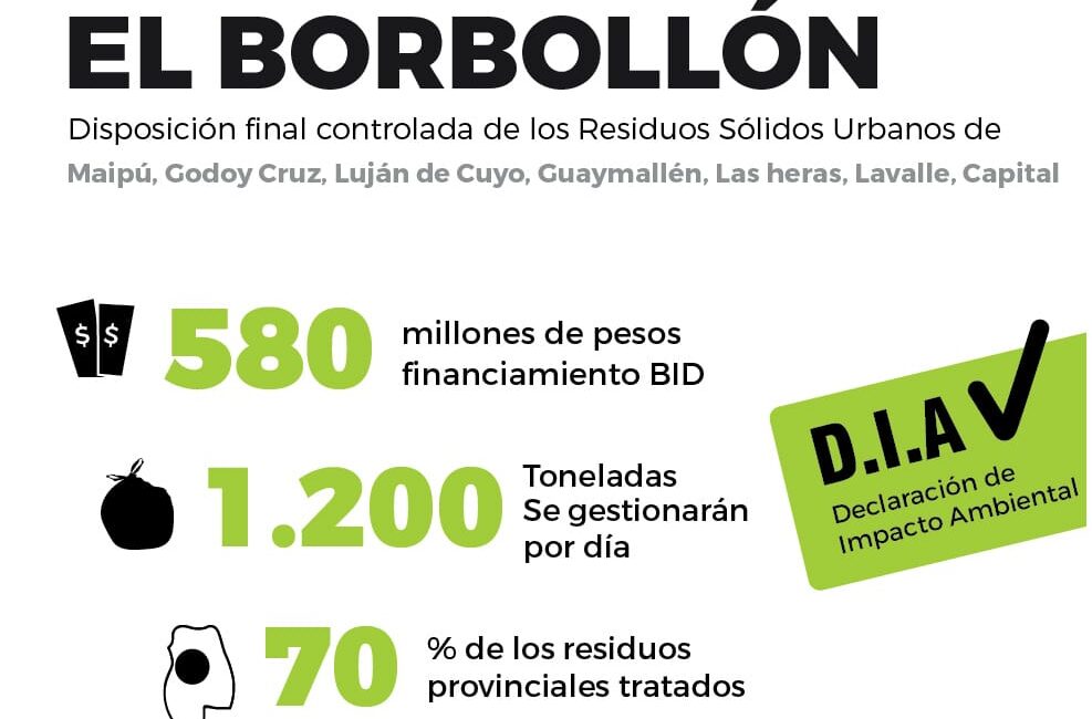 El proyecto de “Construcción y Operación del Centro Ambiental El Borbollón”, que tiene como objetivo lograr la disposición final controlada de los residuos sólidos urbanos que se generan en la Área Metropolitana de Mendoza (Unicipio), ya cuenta con la Declaración de Impacto Ambiental correspondiente.