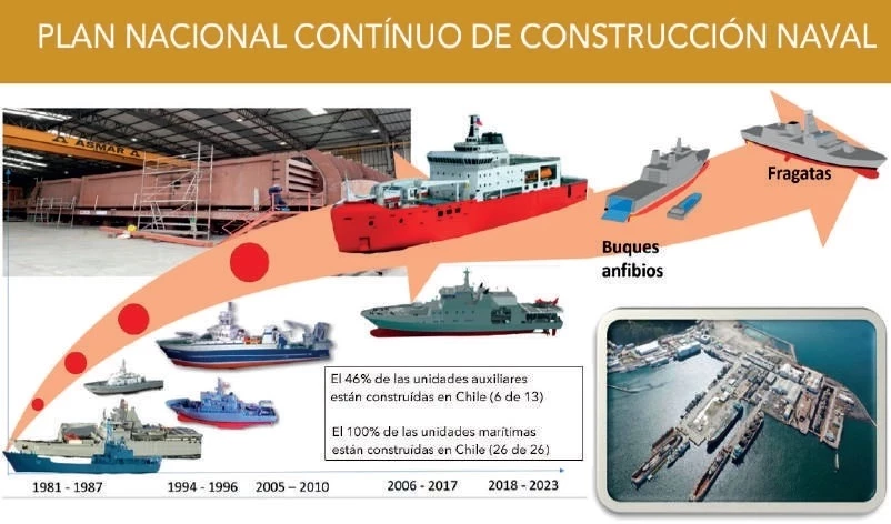 El lanzamiento del Plan toma al astillero chileno en pleno Proyecto Escotillón IV, que contempla la construcción en Chile de cuatro buques multipropósito, y con la seria intención de que, en la próxima década, el país sudamericano pueda construir sus propios buques de guerra.