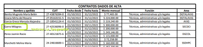 Por lo pronto, le transformó la economía familiar. Milagros, fruto de su relación con María Dolores Conde, fue incorporada a fines del año pasado para realizar supuestas tareas administrativas en la Secretaría Desarrollo Ciudadano que depende de la Vicejefatura de Gobierno. Ingresó en octubre y, en diciembre, su sueldo fue de generosos 200.000 pesos.