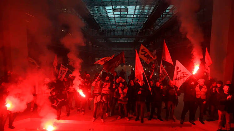 Manifestantes irrumpieron en la sede de BlackRock en París en protesta contra la reforma previsional. Con bengalas y bombas de humo, ingresaron al edificio levantando pancartas mientras coreaban consignas contra el gobierno de Emmanuel Macron.