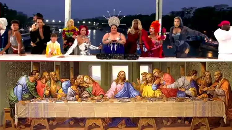En una gran mesa varias personas disfrazadas de modo extravagante, algunas estilo drag queens, parodiaban “La última cena”, de Leonardo Da Vinci. Una de las obras más clásicas de un tema recurrente en la pintura: la celebración de la Pascua por Jesús junto a sus discípulos, horas antes de ser entregado por Judas a las autoridades.