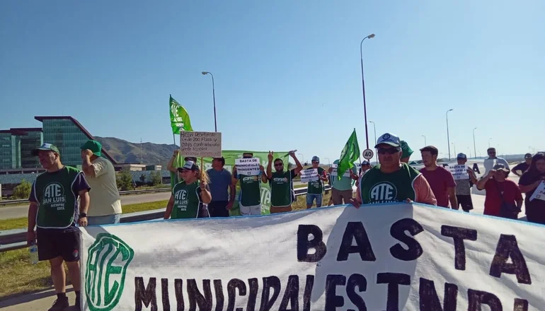 Los trabajadores, encabezados por el titular de ATE filial San Luis, Fernando Gatica, reclamaron que el Estado de marcha atrás con el desdoblamiento de sueldos, vuelva a reactivar el “Tratado de la Toma” para los municipios provinciales y que se termine con el despido de empleados públicos y municipales.