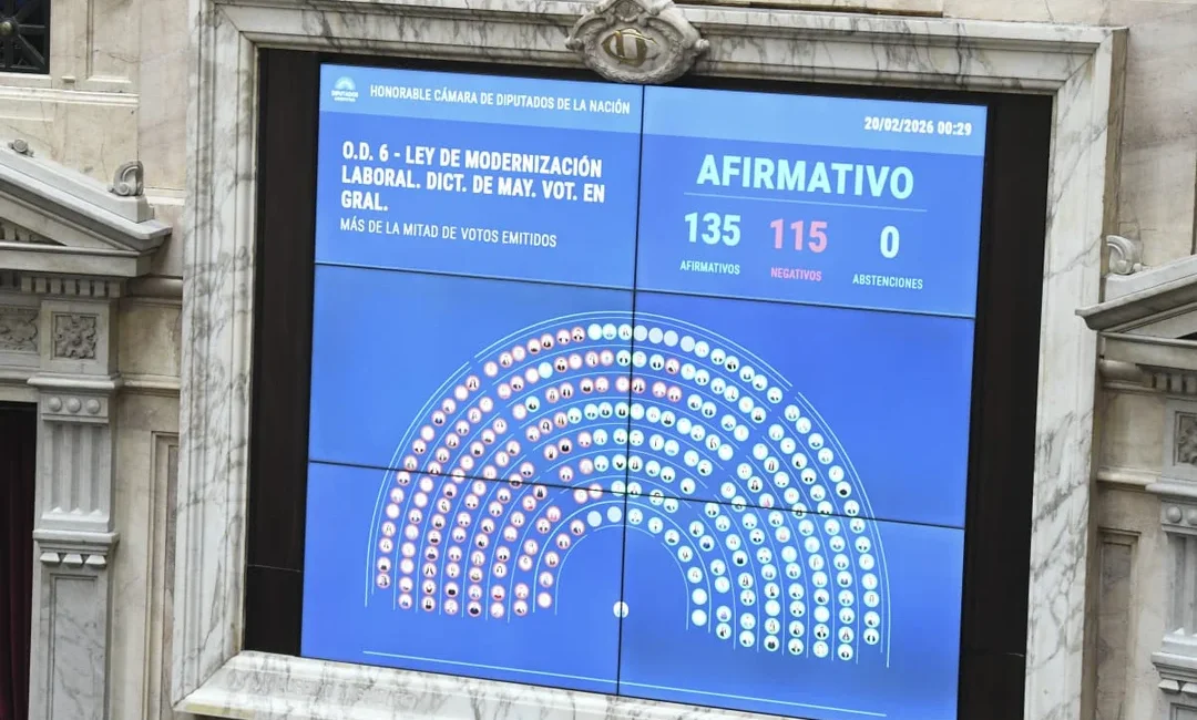 La Cámara de Diputados aprobó pasada la medianoche el proyecto de modernización laboral con 135 votos positivos y 115 negativos. El texto recibirá cambios en la media sanción del Senado y deberá volver a la Cámara alta.